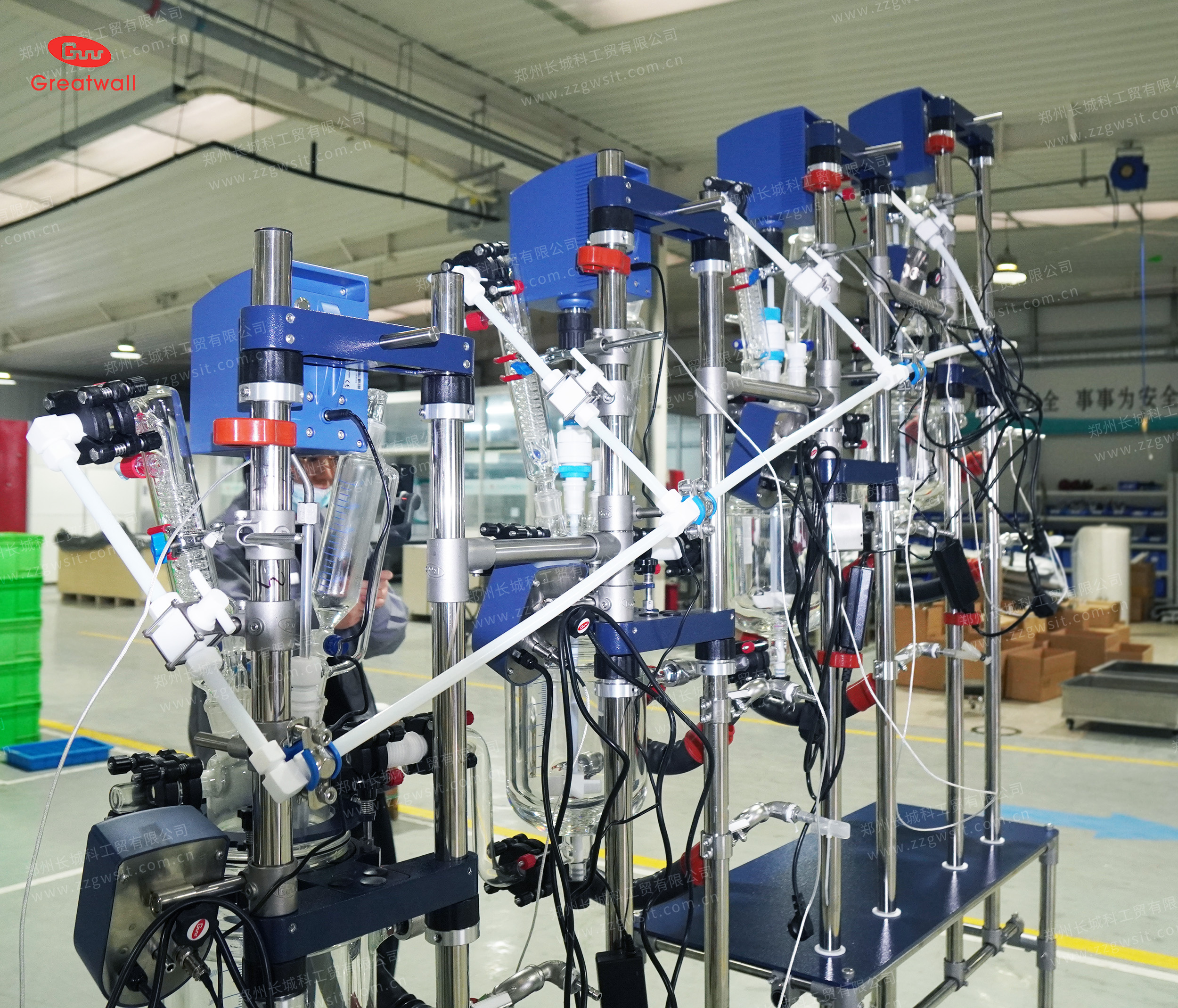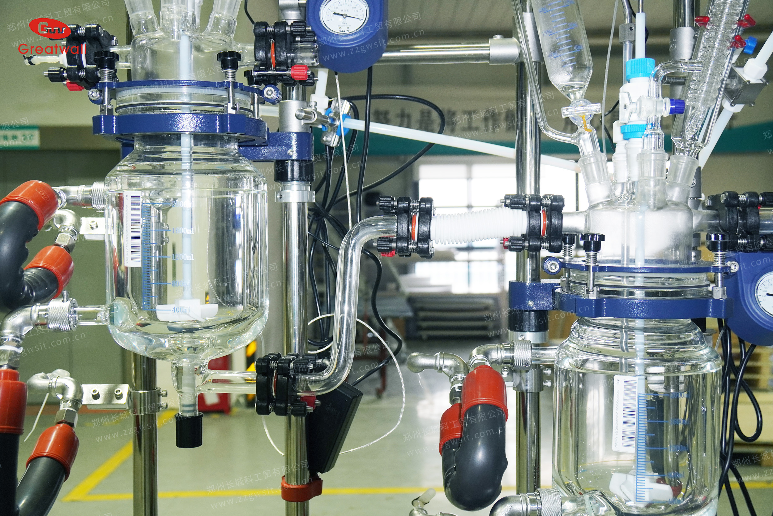 在現(xiàn)代化學(xué)合成與工藝開發(fā)中,從實(shí)驗(yàn)室小試到中試驗(yàn)證,連續(xù)化、自動(dòng)化、可重復(fù)的反應(yīng)系統(tǒng)正成為提升效率與產(chǎn)品質(zhì)量的關(guān)鍵。四級(jí)串聯(lián)溢流玻璃反應(yīng)釜組合裝置作為一種用于連續(xù)化工業(yè)生產(chǎn)的多級(jí)反應(yīng)系統(tǒng),其通過(guò)溢流方式實(shí)現(xiàn)物料的連續(xù)流動(dòng)與逐級(jí)反應(yīng),既簡(jiǎn)化了工藝流程,又提高了系統(tǒng)的穩(wěn)定性和可靠性,廣泛應(yīng)用于精細(xì)化工、制藥、新材料合成等領(lǐng)域,適配多階段反應(yīng)控制的復(fù)雜化學(xué)工藝需求。