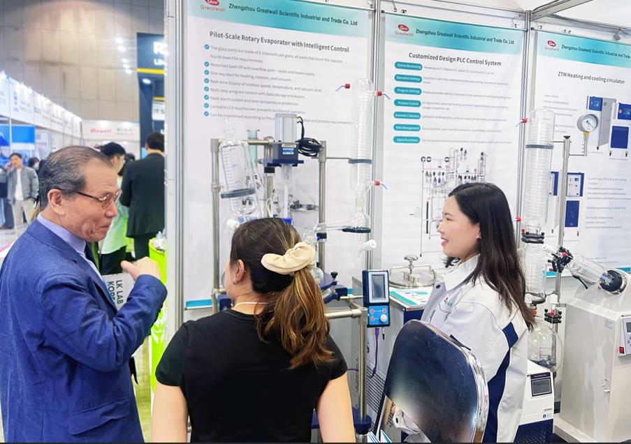 開展首日,長城科工貿(mào)展位人氣持續(xù)走高,此次帶來的“明星陣容”成為了現(xiàn)場焦點(diǎn),全方位展示了我們在實(shí)驗(yàn)室溫控、反應(yīng)合成、蒸餾提純等領(lǐng)域的技術(shù)積累與創(chuàng)新成果,吸引了眾多韓國本土及海外客商駐足咨詢。公司專業(yè)技術(shù)團(tuán)隊(duì)現(xiàn)場一對一深度講解產(chǎn)品性能,精準(zhǔn)對接海外市場個(gè)性化需求,現(xiàn)場收獲廣泛認(rèn)可與大量合作意向。